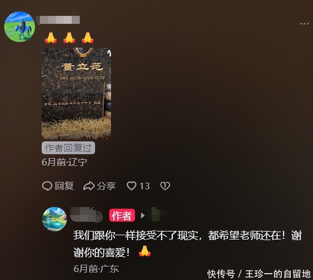 当一位网友曝出董立范的墓碑时,一位与董立范曾合影的女网友说她也接受不了现实,希望老师还在。