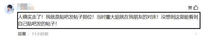 在这次董立范被曝离世的消息引发关注后,该网友再度现身,直言“人确实走了!我就是贴吧发帖子那位!当时董大姐就在我朋友的对床!没想到这里能看到自己贴吧发的帖子!”